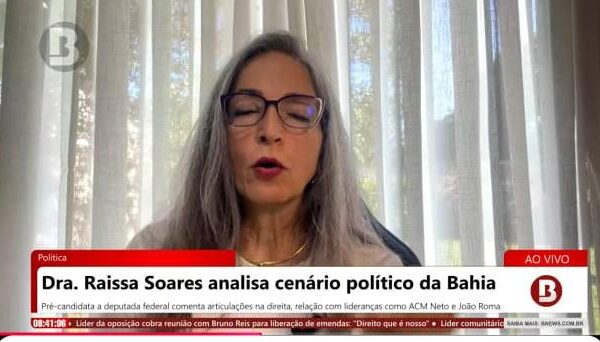 Em entrevista à rádio Baiana FM nesta terça-feira (28) a pré-candidata a deputada federal, Raíssa Soares (PL), fez uma avaliação do cenário político local e cravou que o ex-prefeito de Salvador e pré-candidato a governador da Bahia, ACM Neto (União Brasil) tem que fazer um esforço para não levar a disputa ao Governo da Bahia para o segundo turno. Segundo ela, toda a oposição deve se alinhar para que a vitória aconteça já no primeiro turno.