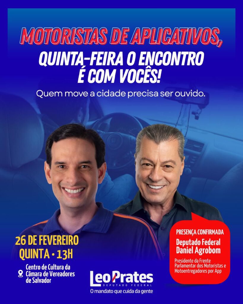 O programa Câmara pelo Brasil estará em Salvador (BA) nesta quinta-feira (26), às 13h, para um encontro com motoristas de aplicativos da região. O deputado federal Leo Prates, vice-presidente da comissão especial que trata da regulamentação dos motoristas e coordenador do Câmara pelo Brasil no Nordeste, irá receber o presidente da Frente Parlamentar em Defesa […]